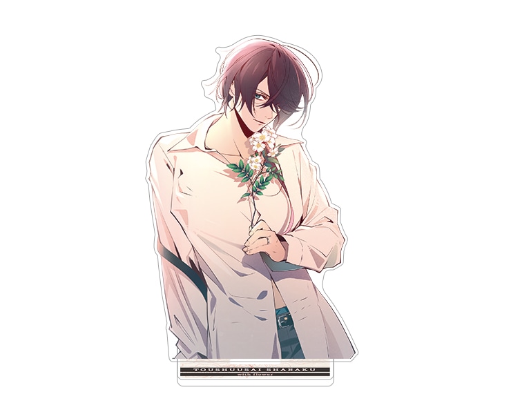 オトメイトのキャラクター描きおろしグラビア企画、“with flower”シリーズから、B’s-LOG本誌2022年11月号~2023年4月号に掲載された、全12キャラクターを楽しめる高さ約150mmのアクリスタンドです。