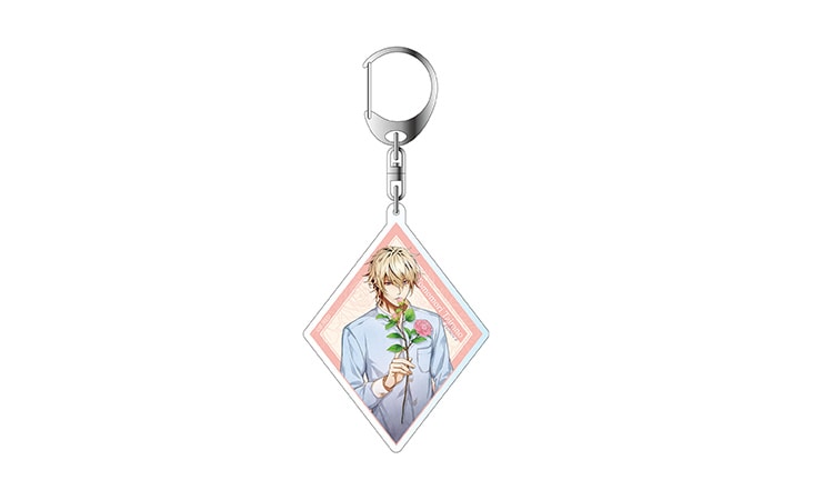 オトメイトのキャラクター描きおろしグラビア企画、“with flower”シリーズから、B’s-LOG本誌2022年5月号~2023年4月号に掲載された、全24キャラクターを配した縦約80mm、幅60mmのアクリルキーホルダーです。