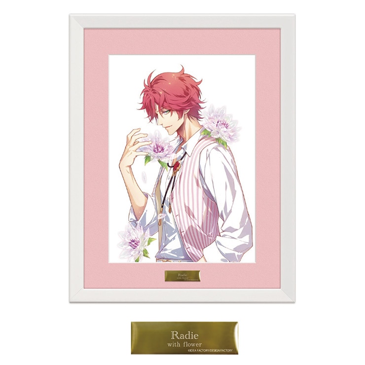 オトメイトのキャラクター描きおろしグラビア企画、“with flower”シリーズから、B’s-LOG本誌2022年11月号~2023年4月号に掲載された、全12キャラクターを額装した複製原画です。高画質印刷技術により国宝や重要文化財などのレプリカ製作に応用され、高い評価を得ている技法で複製し額装しました。高級感のある金属プレートにはキャラクター名を施しています。