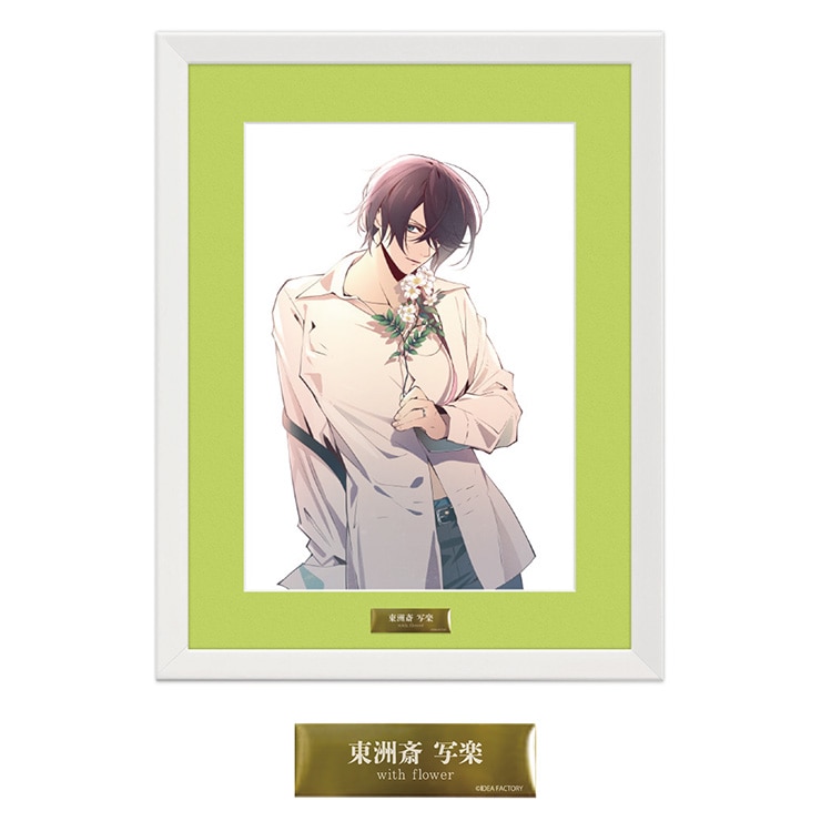 オトメイトのキャラクター描きおろしグラビア企画、“with flower”シリーズから、B’s-LOG本誌2022年11月号~2023年4月号に掲載された、全12キャラクターを額装した複製原画です。高画質印刷技術により国宝や重要文化財などのレプリカ製作に応用され、高い評価を得ている技法で複製し額装しました。高級感のある金属プレートにはキャラクター名を施しています。