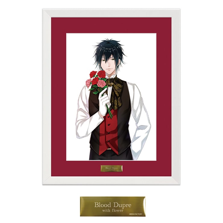オトメイトのキャラクター描きおろしグラビア企画、“with flower”シリーズから、B’s-LOG本誌2022年11月号~2023年4月号に掲載された、全12キャラクターを額装した複製原画です。高画質印刷技術により国宝や重要文化財などのレプリカ製作に応用され、高い評価を得ている技法で複製し額装しました。高級感のある金属プレートにはキャラクター名を施しています。