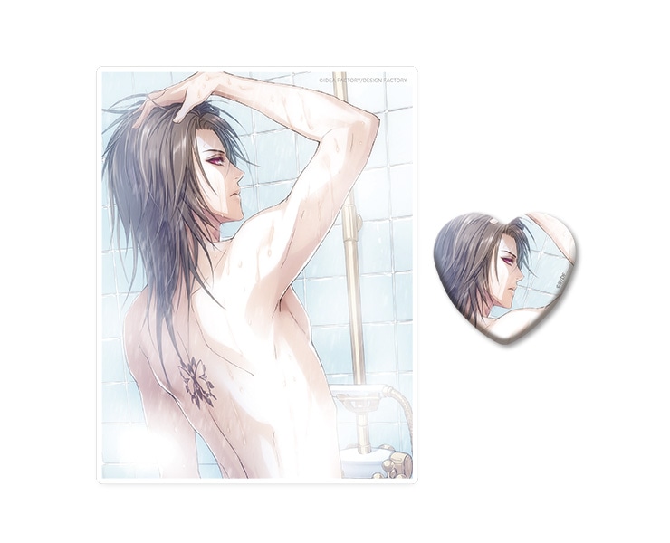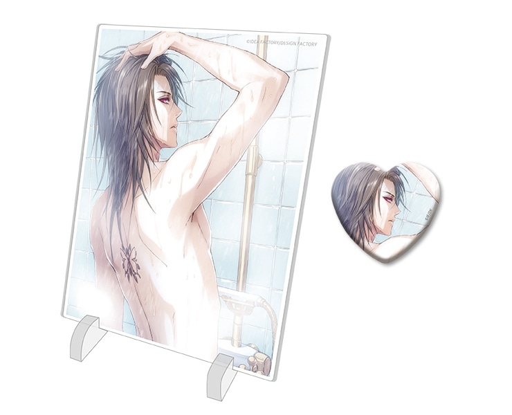 B’s-LOG 2011年9月号付録の描きおろしイラストを配したアクリルパネルとハート缶バッジのセットです。