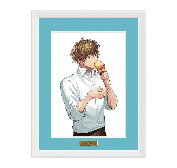 オトメイトのキャラクター描きおろしグラビア企画、”with sweets”シリーズから、B’s-LOG 2023年8月号~2023年10月号に掲載の、全6キャラクターを楽しめる複製原画です。豪華額装入り。正面の金属プレートにはキャラクター名をあしらいました。