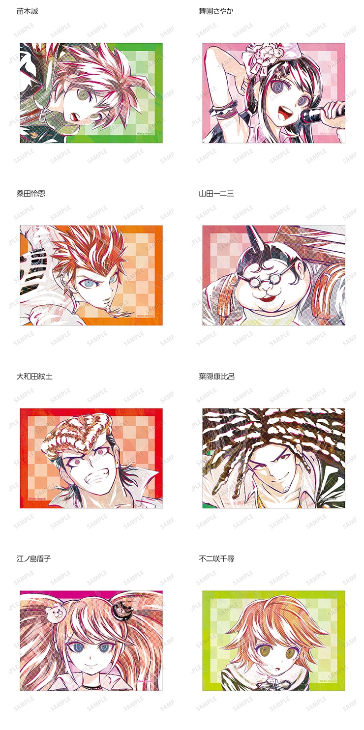 苗⽊誠、舞園さやか、桑⽥怜恩、⼭⽥⼀⼆三、⼤和⽥紋⼟、葉隠康⽐呂、江ノ島盾⼦、不⼆咲千尋のイラストを新たなタッチで魅⼒的に表現し、ブロマイドに仕上げました。