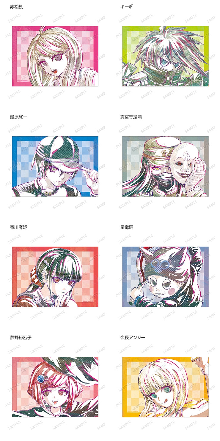 ⾚松楓、キーボ、最原終⼀、真宮寺是清、春川魔姫、星⻯⾺、夢野秘密⼦、夜⻑アンジーのイラストを新たなタッチで魅⼒的に表現し、ブロマイドに仕上げました。