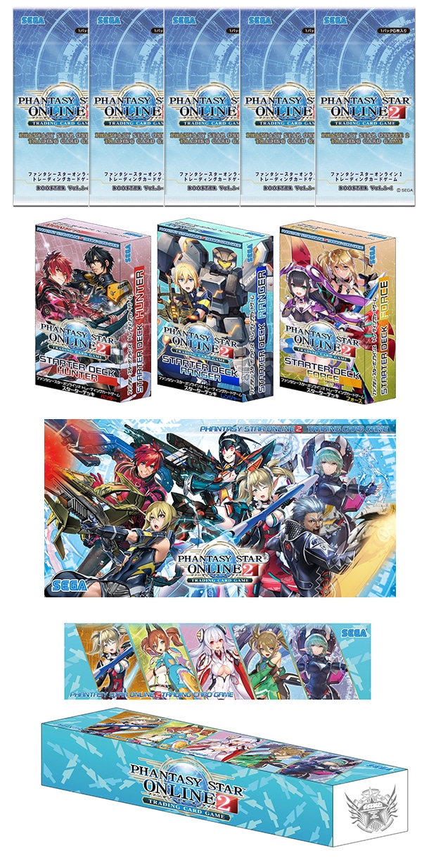 2018年3月22日”PSO2 TCG”発売を記念し、【ブースターパックEP1-1 5パック】【スターターデッキ ハンター・レンジャー・フォース 各1個】【特製プレイマット1枚】を特製ロングストレージBOXに封入!更にアイテムコードが付いたレア感満載の数量限定セットとなります。