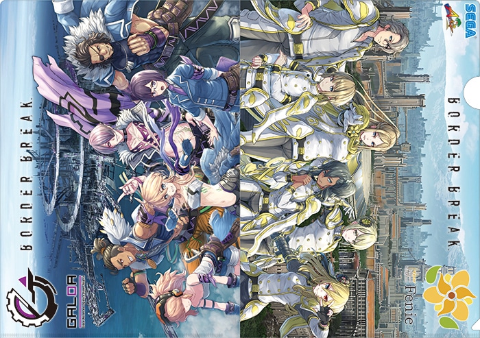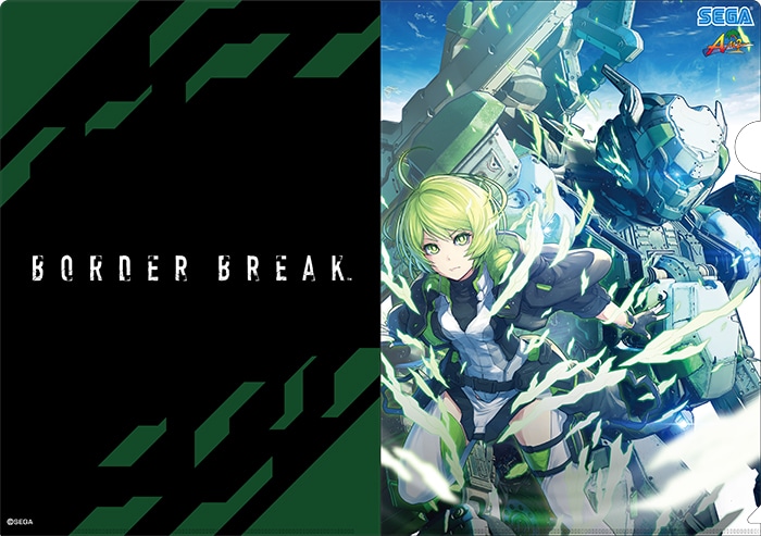 PS4版『BORDER BREAK』のビジュアルでデザインされたクリアファイル。ハティ・BR「輝星・空式」の1枚と、2大陣営でデザインされた2枚組セット。サイズ:A4