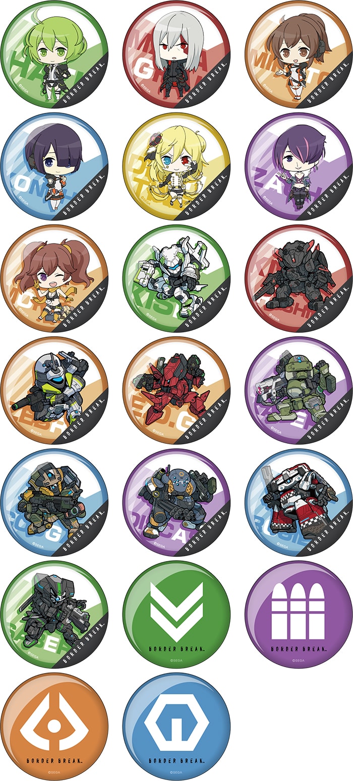 PS4版『BORDER BREAK』に登場するキャラクターやBRを、可愛くデフォルメした缶バッジ。