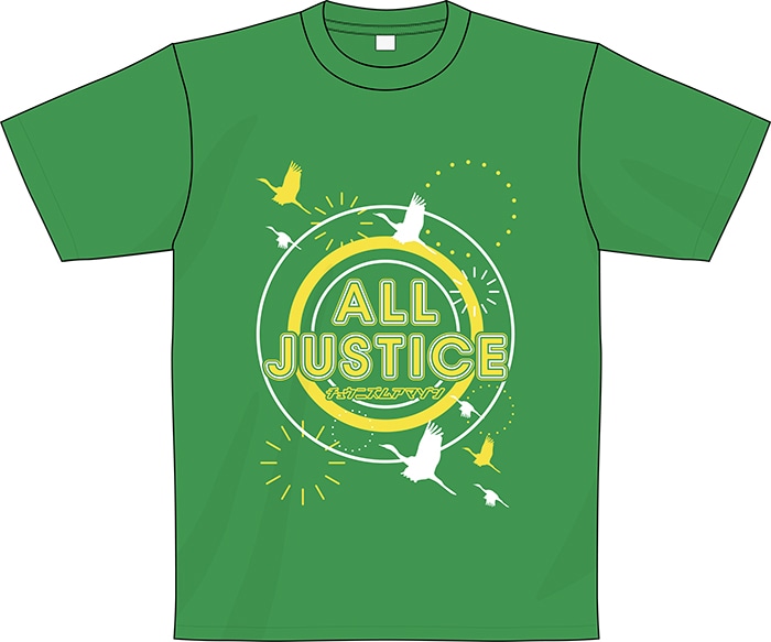 『チュウニズム AMAZON』をイメージしたグリーンボディの「ALL JUSTICE」Tシャツ。背中襟元にもワンポイント!サイズ:着丈約70cm 身幅52cm 袖丈20cm