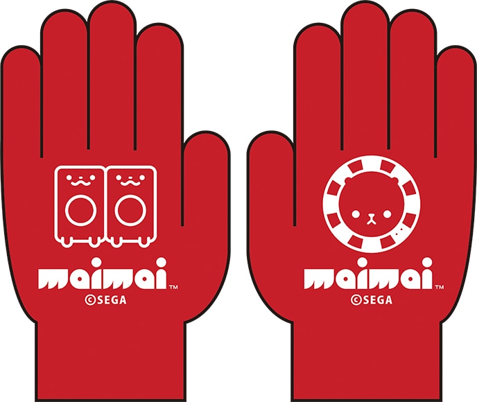 『オンゲキ』のオレンジ、『チュウニズム』のブラック、『maimaiでらっくす』のレッド、3種をセットにした手袋セット。