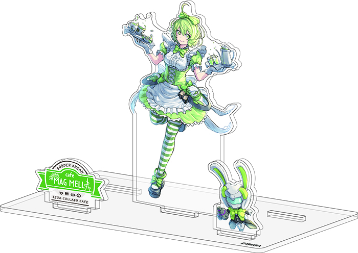 「cafe MAG MELL」のメインビジュアルであるハティをアクリルスタンドに。別パーツでかわいいBR「輝星・空式」も付いています。サイズ:約12.5×15cm