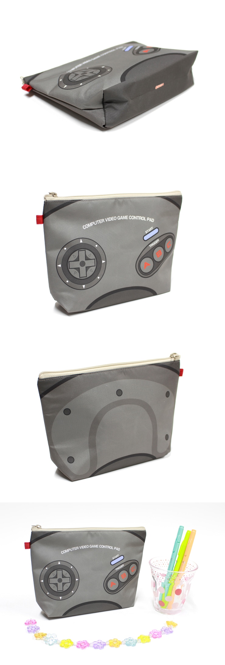 メガドライブのコントローラーデザインを使用致しました。表面はコントローラーのボタンやスティックのある上部デザインを再現し、裏面もコントローラーの裏を再現した、遊び心いっぱいのポーチです。撥水加工された傘生地を使用し、しっかりとした作りとなっておりますので、丈夫で長持ち、雨の日や水場でも安心してご使用いただけます。コントローラーデザインのポーチに合う、ハードデザインの折畳傘&トートバッグも同時発売です!