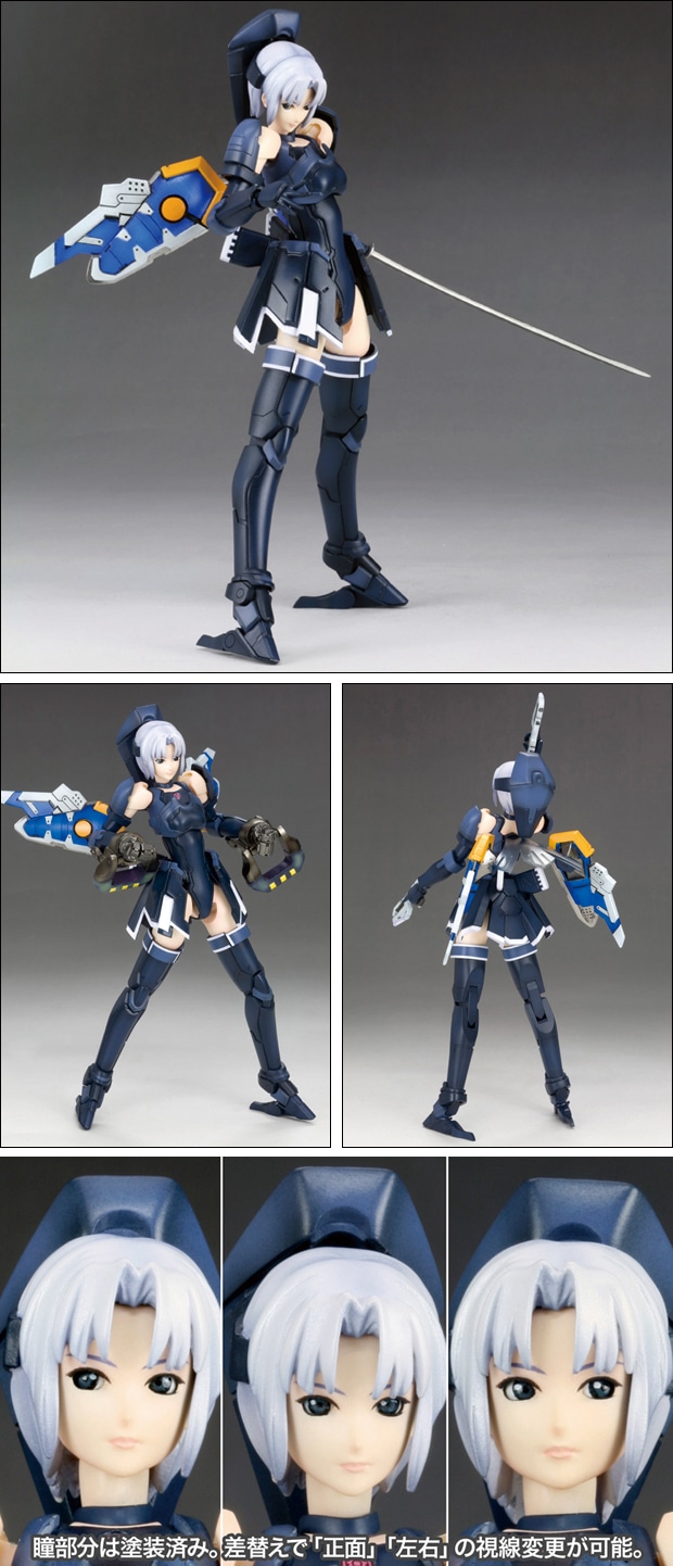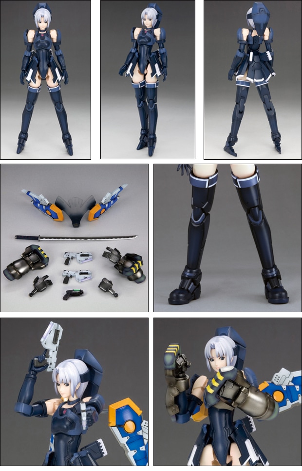 成形色は「黒」を大胆に使用した“艶っぽいカラーリング”と“特徴的な頭部パーツ”など大人びたシノの印象を忠実に再現。付属武器は「H&S25ジャスティス」「ベリルナックル」「アギト」「ハンドガン」更に足パーツが二種類付属されており、バリエーション豊富な内容となっています。