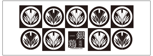 銀鶏の特徴的なアウトラインを家紋風にアレンジして和風手ぬぐい柄でデザイン。普段使いにも小粋なオフィシャル手ぬぐいです。