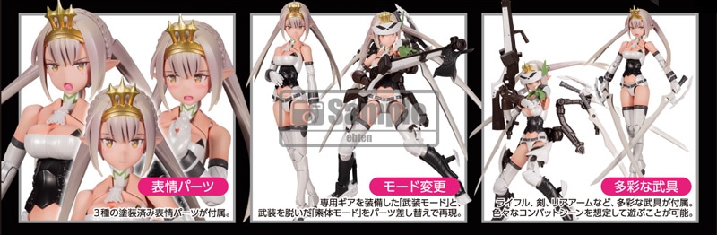 新作ゲーム「武装神姫」と「メガミデバイス」のコラボレーション! 未だ謎のベールに包まれている新作ゲーム「武装神姫」のキャラクターがメガミデバイス仕様でプラモデルに登場。