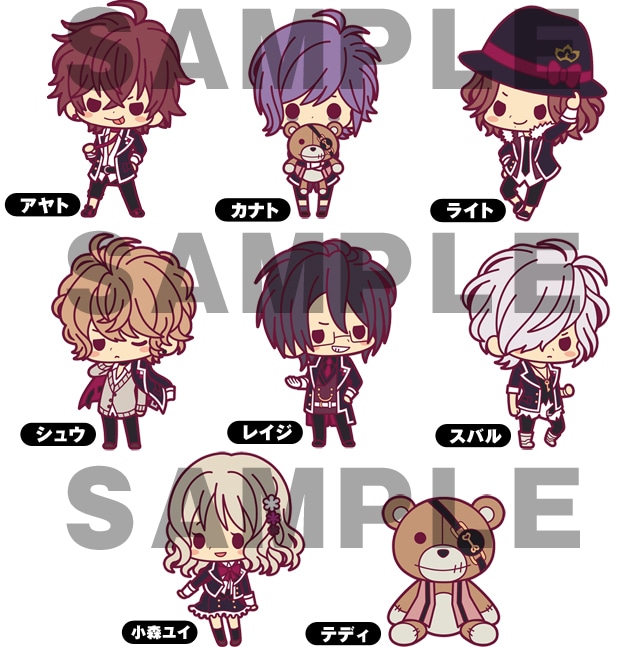 キャラクターラインナップは、小森ユイ、逆巻アヤト、逆巻カナト、逆巻ライト、逆巻シュウ、逆巻レイジ、逆巻スバル、テディの全8種類。