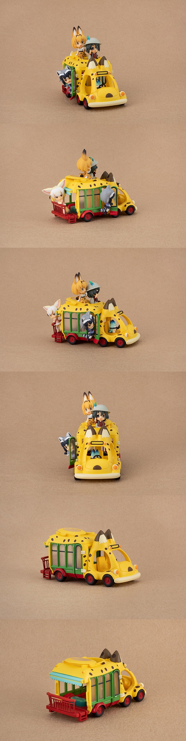 バスだけではなく、サーバル・かばん・アライグマ・フェネックを載せて飾る事ができ、ラッキービーストが運転する様子も楽しめます!