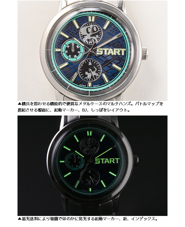 機兵を思わせる機能的で硬質なメタルケースのマルチハンズ。バトルマップを想起させる盤面テクスチャー。蓄光塗料により暗闇でほのかに発光する起動マーカー、BJ、しっぽ。バックルに刻まれたタイトルロゴ …etc.時計を見るたびに、ゲームプレイを堪能した濃厚な時間が蘇ってくるような、十三機兵防衛圏の世界観を象徴するモチーフを随所に織り込みながらも、オンオフ問わず日常使いができ、飽きることなく長くご使用いただける絶妙なさじ加減のデザインを目指しました。十三機兵防衛圏リリース1周年を記念する特別な腕時計です。メンズサイズですが、女性にも大きめサイズをお洒落にお楽しみいただけます。
