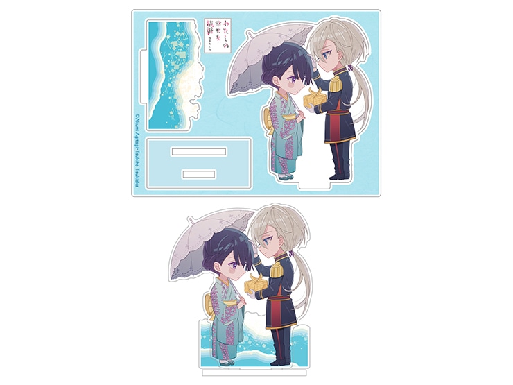 作品内の印象的なシーンをちびキャラ美世&清霞が再現するアクリルフィギュア。一つの台座に二人が仲良く並びます。清霞が美世の頭を撫でている胸キュンシーンを再現。※7月上旬開催予定のイベントで先行販売を予定しております。■サイズ:板状H90×W120㎜、 組立時:約H70×85㎜■素材:アクリル■原産国:日本協力:高坂りと(c)Akumi Agitogi・Tsukiho Tsukioka