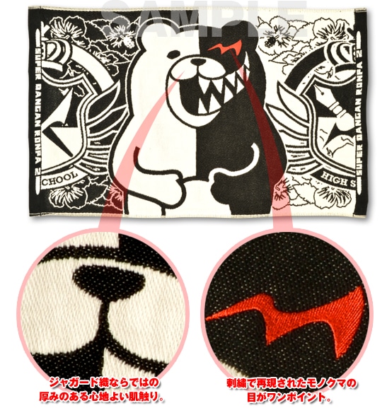 モノクマをモチーフに白x黒地のジャガード織り加工と刺繍で再現したタオル。