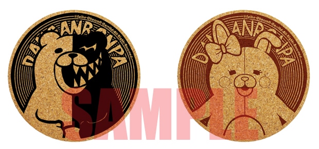 モノクマとモノミがそれぞれプリントされたコルクコースター2種セットです。