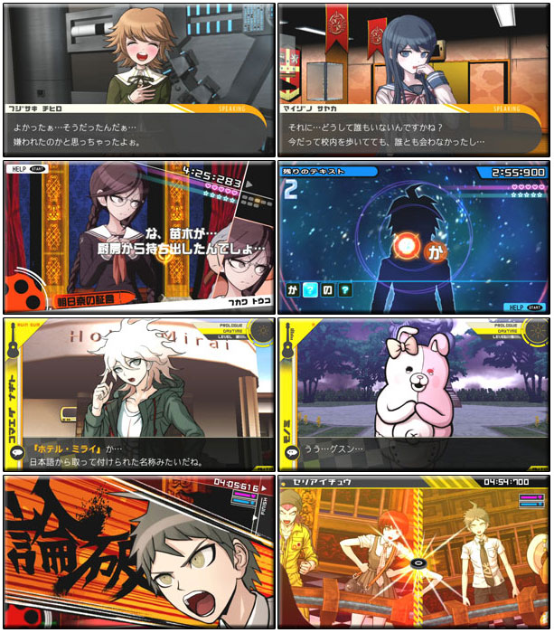 PS Vita向けにグラフィックを高解像度化。キャラクター、背景はより美麗に。今までのボタン操作に加えて、新たに画面・背面タッチ操作にも対応。学級裁判時のコトダマを撃ち込む際や閃きアナグラム時に直接画面をタッチしたり、発言を邪魔する"ガヤ"も背面タッチで壊せる!