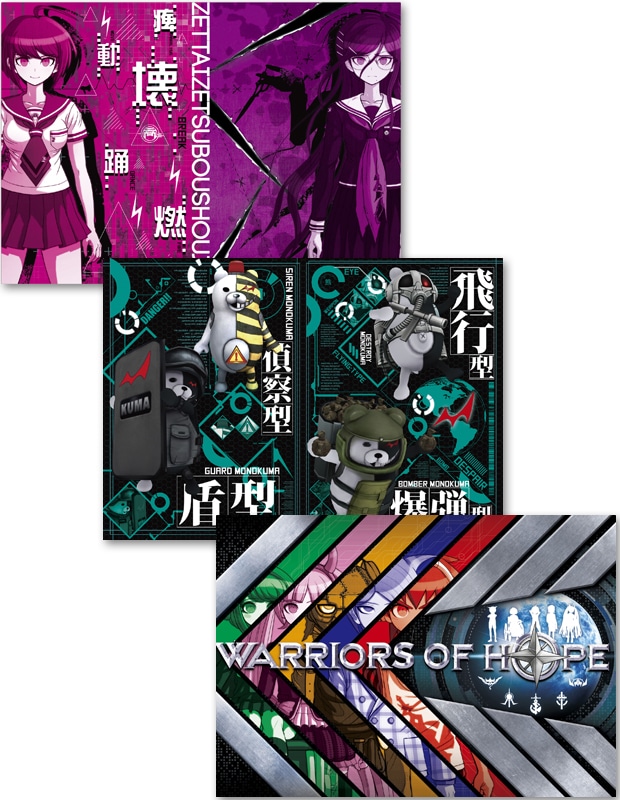 『絶対絶望少女』のキャラクターが描かれたクリアファイルセットです。今度のクリアファイルはWポケット!ポケット部分にはクロクマ、シロクマがちょこんとまぎれています。