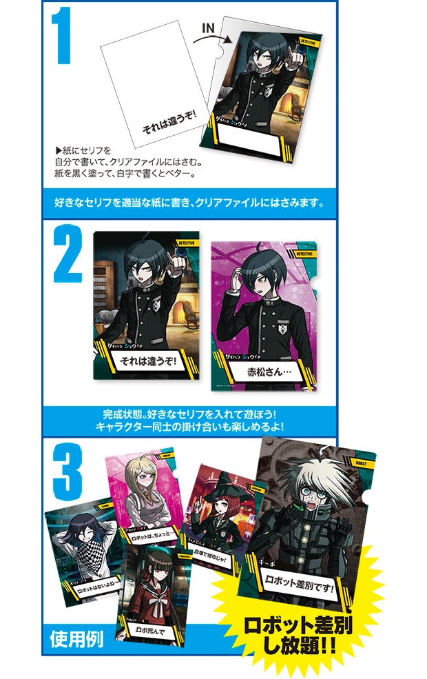 最原終一/百田解斗/星竜馬/天海蘭太郎/獄原ゴン太/王馬小吉/真宮寺是清/キーボ/東条斬美/夢野秘密子/春川魔姫/茶柱転子/白銀つむぎ/夜長アンジー/入間美兎/赤松楓