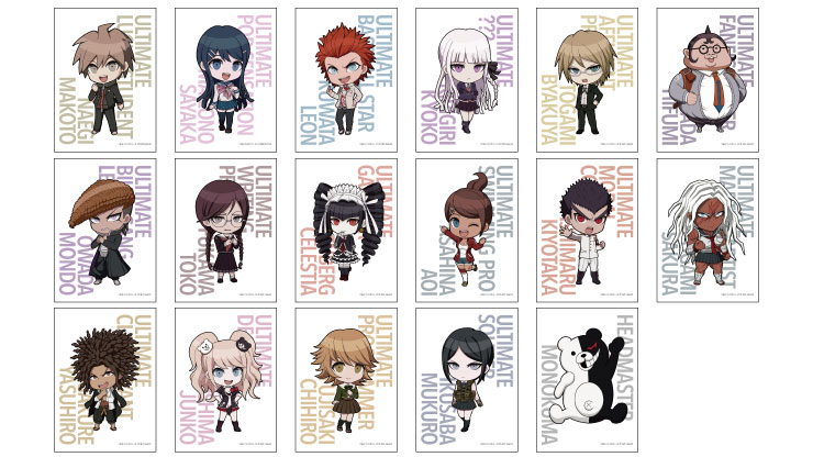 【キャラクター】苗木誠、十神白夜、朝日奈葵、山田一二三、セレスティア・ルーデンベルク、七海千秋、弐大猫丸、左右田和一、罪木蜜柑、西園寺日寄子、九頭龍冬彦、赤松楓、白銀つむぎ、天海蘭太郎、星竜馬、夢野秘密子