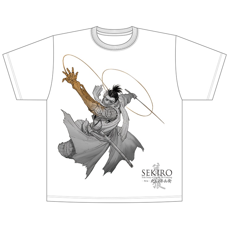 大人気アクションゲームのコミカライズ『SEKIRO 外伝 死なず半兵衛』の山本晋先生描き下ろしイラストを使用、高精印刷を採用した高クオリティのTシャツです。