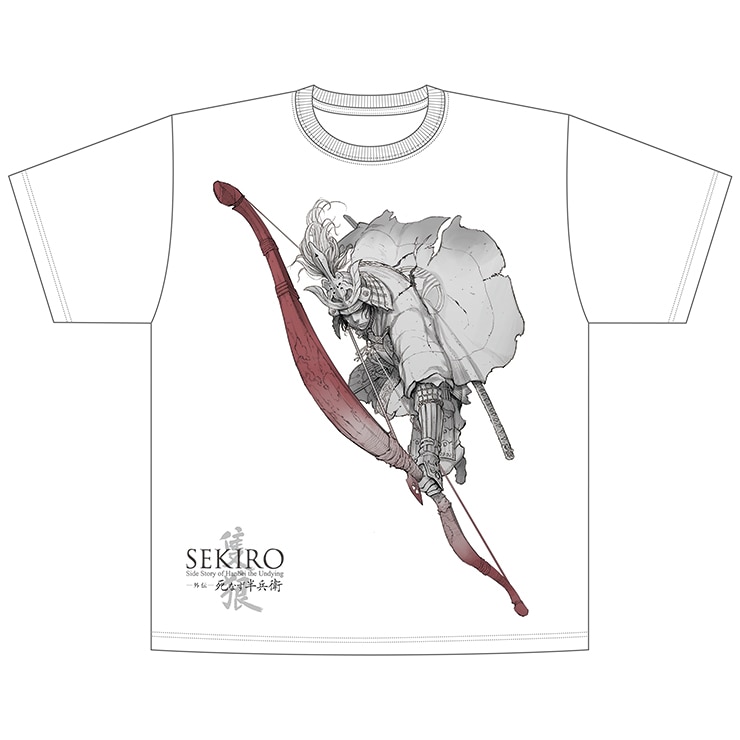 大人気アクションゲームのコミカライズ『SEKIRO 外伝 死なず半兵衛』の山本晋先生描き下ろしイラストを使用、高精印刷を採用した高クオリティのTシャツです。