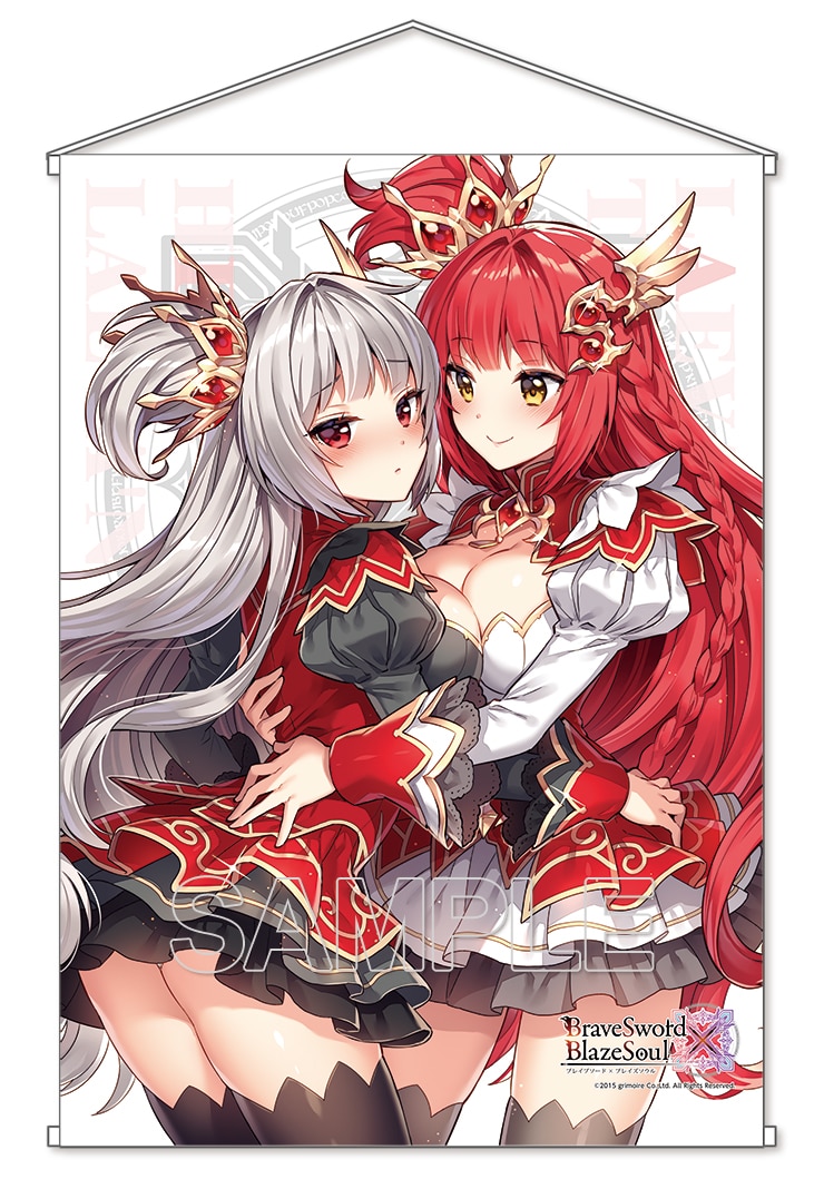 大人気スマホ向けRPG『ブレイブソード×ブレイズソウル』が2020年12月のエアコミケ2にてセット商品として販売した、「『ブレイブソード×ブレイズソウル』レヴァンテイン&ヘル B2タペ&スマホケース ヘルのひもパン型眼鏡拭き付き限定セット」。そのダブルスウェードタペストリーのみが単品商品として再登場!