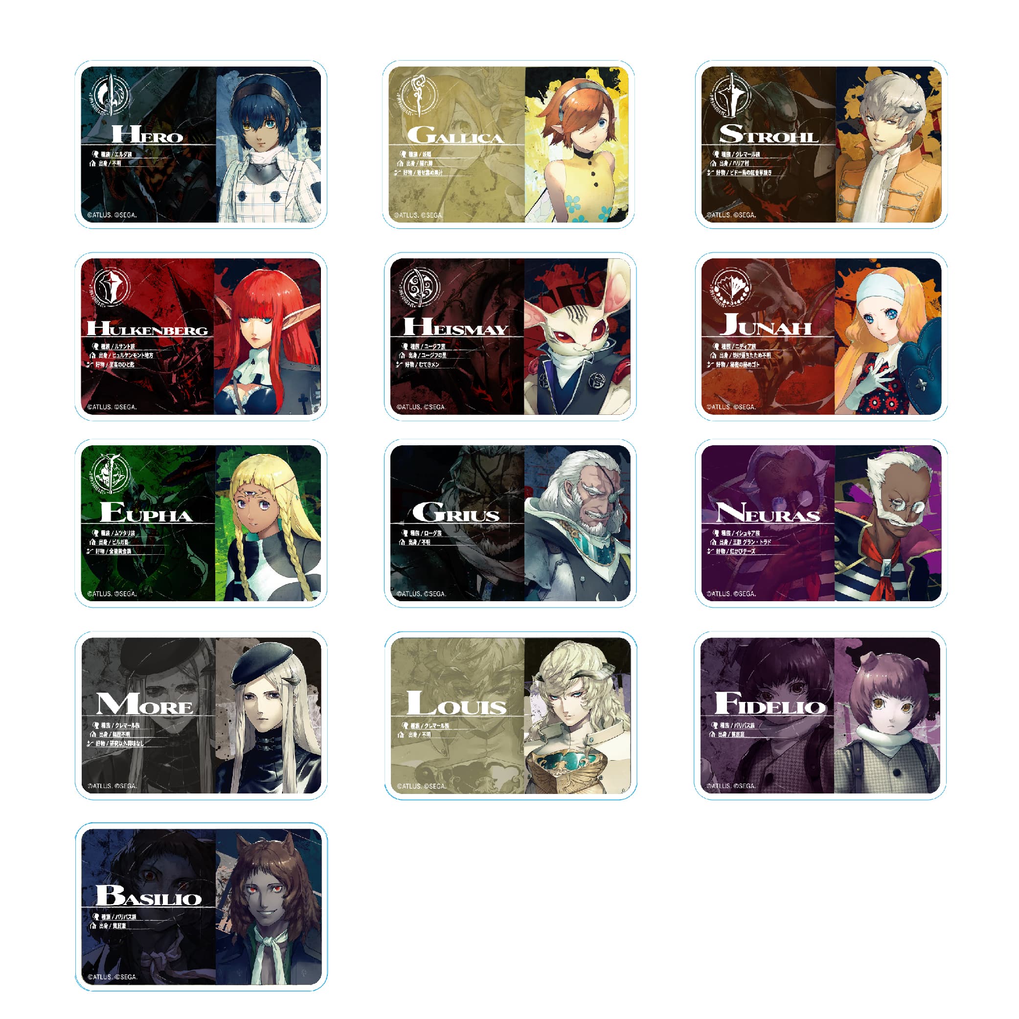 キャラクターのプロフィールが描かれたネームプレート。BOX購入で全デザインが揃います。