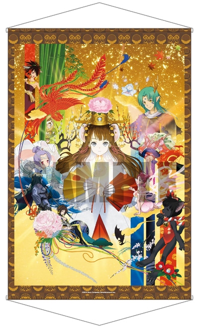 神々しいコーちんのイラストを和風デザインで掛け軸風の壁掛け(タペストリー)に仕上げました。