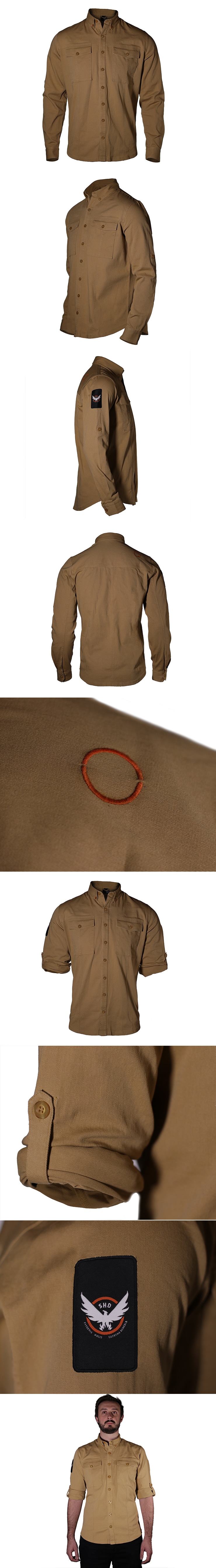 SHDロゴの入ったパッチが右肩の部分にあしらわれたカーキ色のカーゴシャツです。エージェントと同じカーゴシャツを着て戦いに備えよう!98%コットン、2%ポリウレタン製着丈76cm/身幅53cm/袖丈65cm/ウエスト53cm