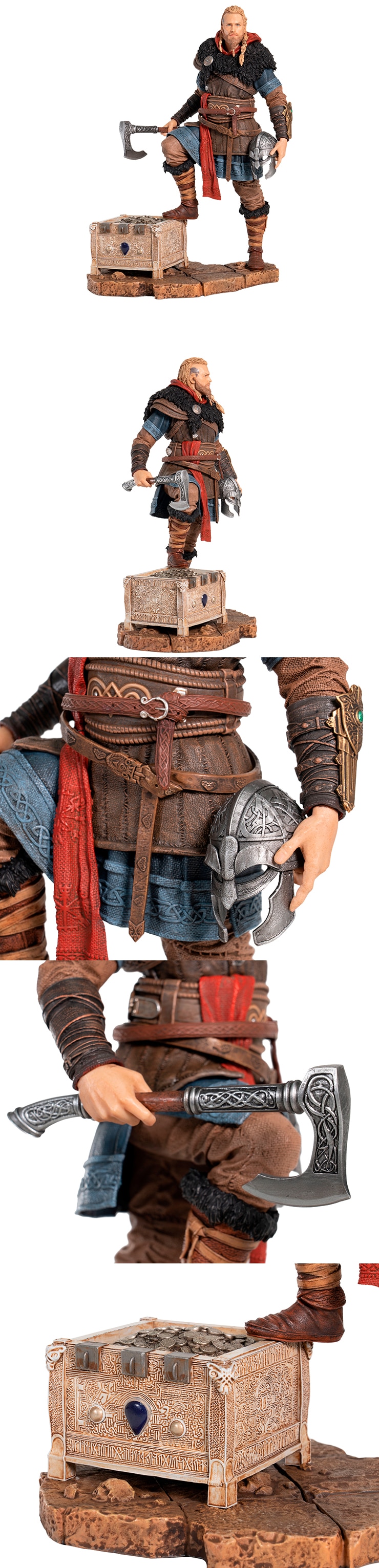 略奪はヴァイキング暮らしに欠かせない。エイヴォルもまた数多くの略奪で勝利を重ねてきた。 このフィギュアは、そんなエイヴォルが激戦をくぐり抜け、勝利と略奪品を手にしたシーンをイメージしたもの。 コレクションとして飾れば、いつでも誉れ高きヴァイキングの勇姿が蘇ること間違いなし。