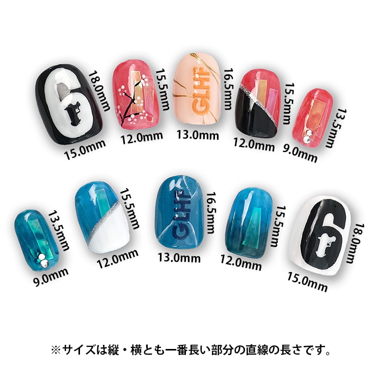 ※爪の測り方:メジャーを利用し、爪の一番広い幅を曲線にそって測ってください。