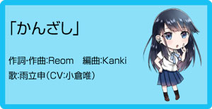 そして購入特典として、雨立日(あまだて・まひる/CV:上坂すみれ)、雨立申(あまだて・しん/CV:小倉唯)それぞれが歌う新しいキャラクターソングのダウンロードコ ードを封入。