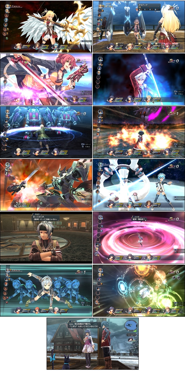 戦闘参加キャラは「軌跡シリーズ」最多の20キャラ以上に!その他、巨大人形兵器《騎神》を操縦して戦う「騎神戦」、複数の属性を組み合わせた強力魔法「ロストアーツ」など、シリーズ独自のバトルシステムを盛り上げる新要素を多数導入!新クラフト、Sクラフトの追加やフィールドマップの大幅な拡大、導力バイクによる移動の他、キャラクター毎のイベント、新作ミニゲーム、特殊クエストといったやりこみ要素も前作以上にグレードアップしています。