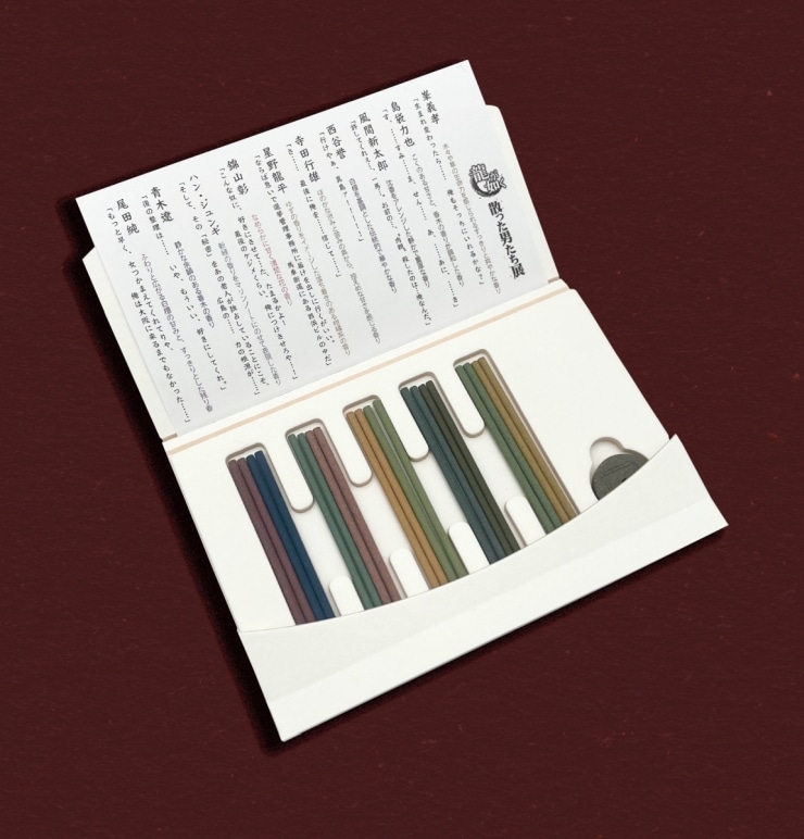 展覧会を記念し、300年の歴史を誇る香老舗「松栄堂」とコレボレーションし制作した、線香セレクションです。