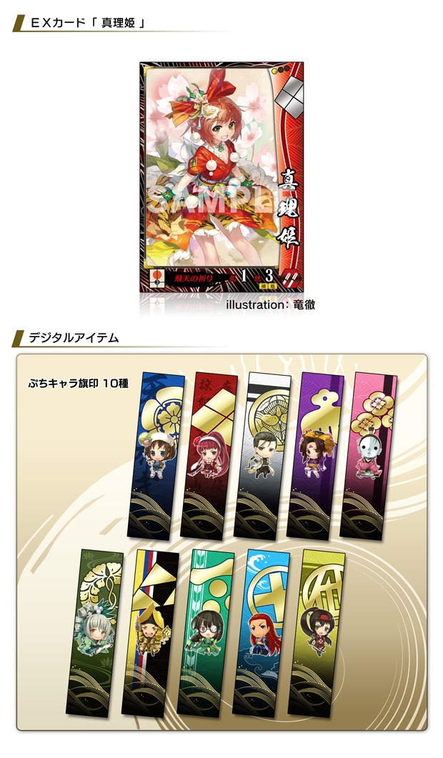 このビジュアルブック限定のEXカード「真理姫」と、旗印が手に入る「アイテムコード」をお付けします。