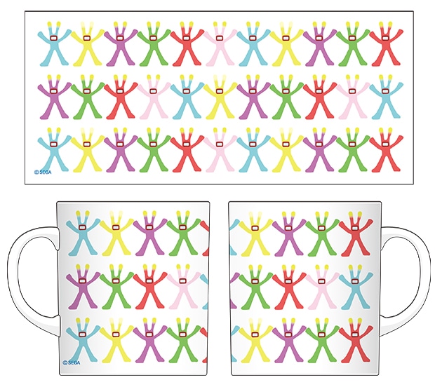宇宙放送局「スペースチャンネル5」の局員が使っている?と噂される「スペースチャンネル5」ロゴを大きくあしらったシンプルで使いやすいデザインと、POPで可愛いモロ星人が、マグカップをぐるりと占領したカラフルなデザインの2種類をご用意。