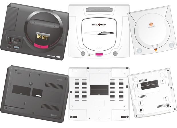 「セガサターン」は「後期型(白)」となり、各ハードの大きさを再現したクリアファイルセット!