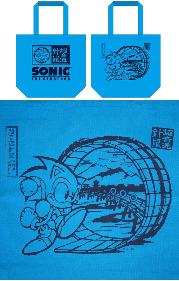 京都を舞台にソニックが駆け出す景色をモチーフに和柄のデザインが施されたトートバッグです。