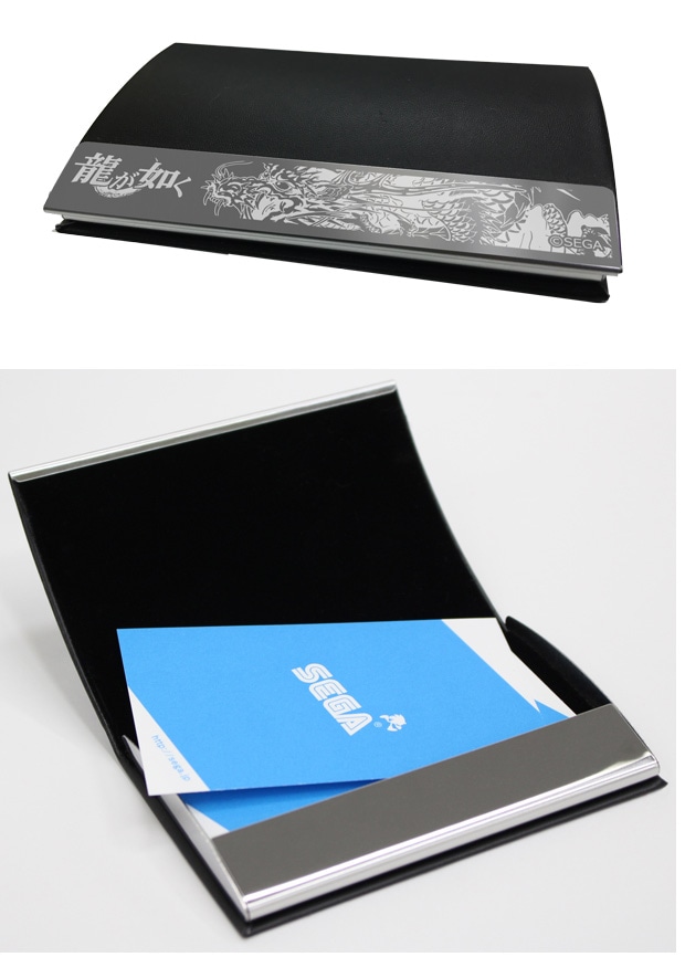 桐生一馬の入れ墨「昇り龍」がレーザー彫刻された、合皮とステンレス製のシックな名刺ケースです。