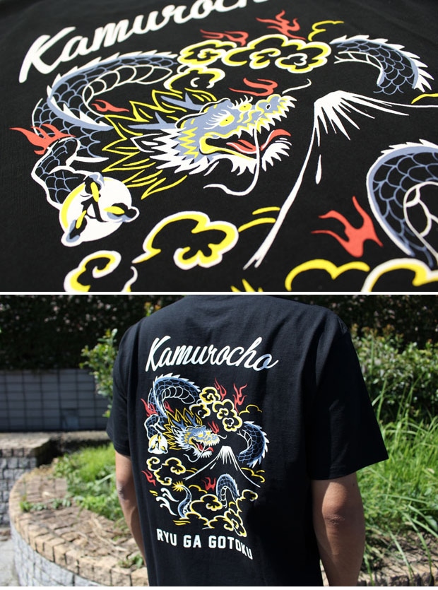 スペシャルなTシャツが登場!桐生と真島の刺青が印象的な刺繍で胸元に入り、背面は昇り龍が大胆に飾ります。派手だけれど、どこにでも着ていけるデザインです。