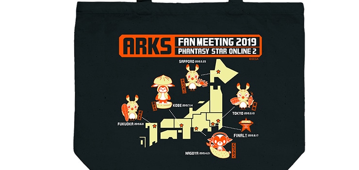 新作トートバッグの登場です。マスコットキャラクターのラッピー・リリーパ・アークマが、感謝祭で巡る会場を、ご当地グルメを添えてコミカルにご紹介!