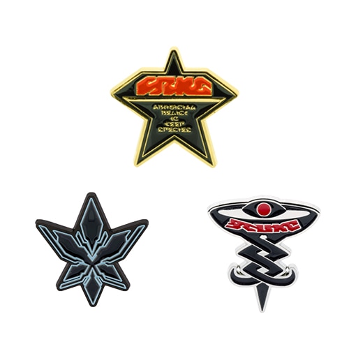 『PSO2』ならではの印象的なモチーフから、アークススター、六芒均衡、ダークファルスマークが大きめのピンバッジになりました。どれもカッコイイ仕上がりです! バッグやTシャツにつけてずっしりした重厚感をお楽しみください。