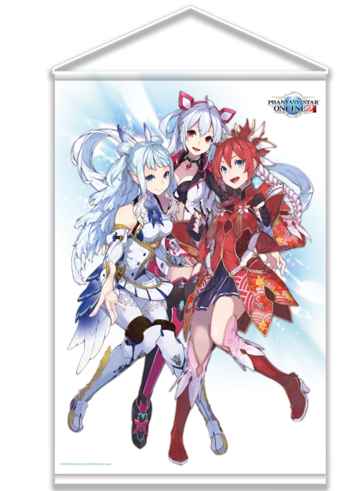 P-SPEC Vol.6のカバー描き下ろしの、マトイ、ヒツギ、ハリエットのイラストが、全身が見られるサイズでタペストリーになりました。お部屋に飾ればパッと華やかに彩ります。