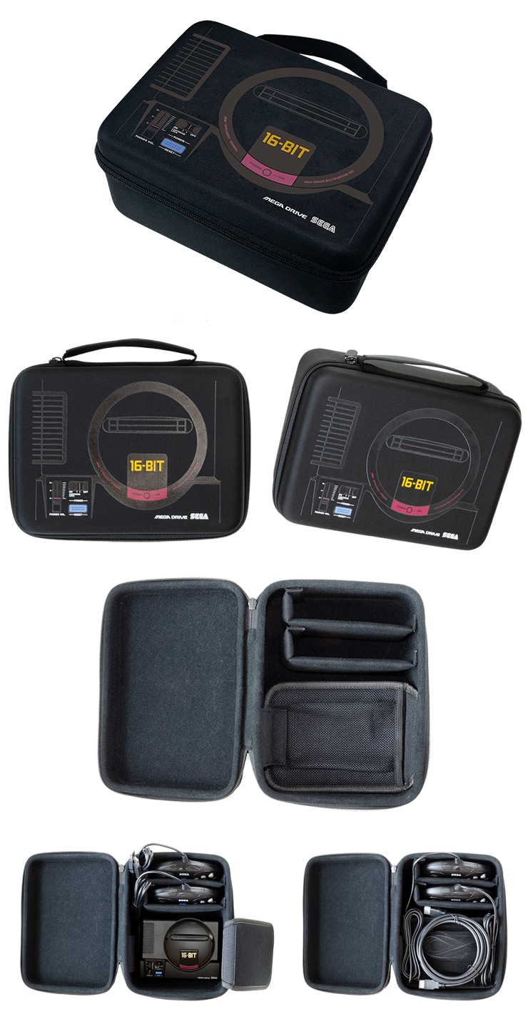 あの感動と思い出が詰まった令和最新ハード「メガドライブミニ」。その本体と付属品を大切に収納できるバッグが登場します。本体とケーブル類、コントロールパッド「ファイティングパッド6B」2個を収納できる容量を確保。持ち運びにも便利なアイテムです。